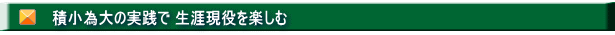 ◆現在の活躍舞台で生涯現役の決め手を創リ、磨く